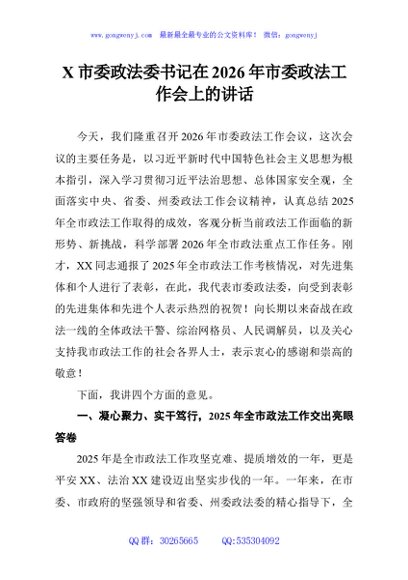 / X市委政法委书记在2026年市委政法工作会上的讲话