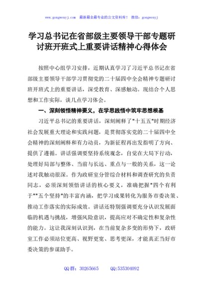 / 学习总书记在省部级主要领导干部专题研讨班开班式上重要讲话精神心得体会