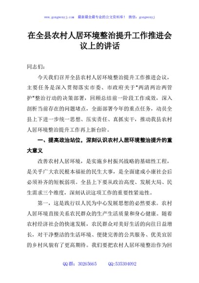 / 在全县农村人居环境整治提升工作推进会议上的讲话