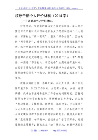 / 领导干部个人评价材料