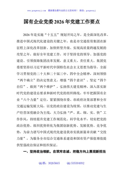 / 国有企业党委2026年党建工作要点