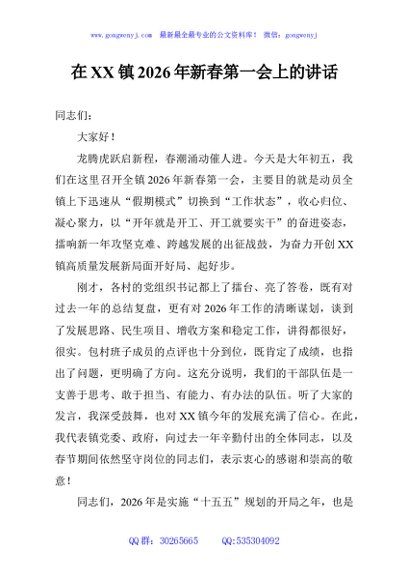 / 在XX镇2026年新春第一会上的讲话