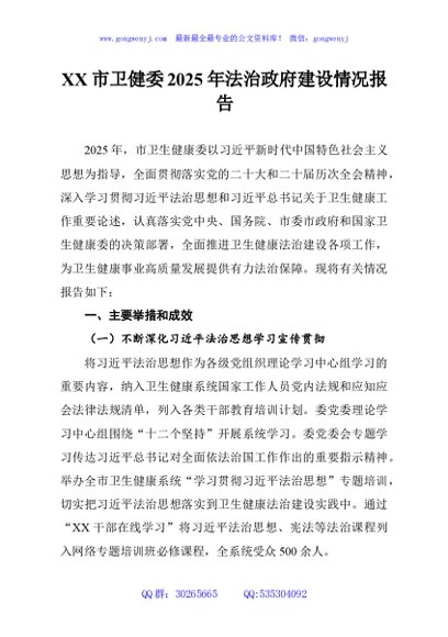 / XX市卫健委2025年法治政府建设情况报告
