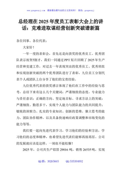 / 总经理在2025年度员工表彰大会上的讲话:克难进取谋经营创新突破谱新篇