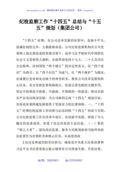 / 纪检监察工作“十四五”总结与“十五五”规划(集团公司)