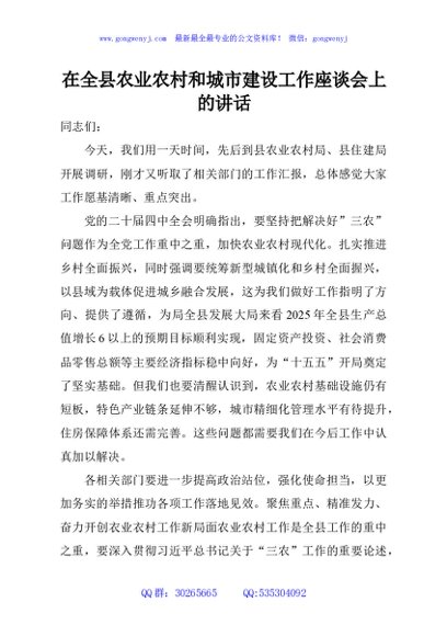 / 在全县农业农村和城市建设工作座谈会上的讲话