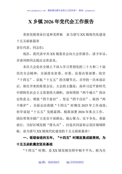 / X乡镇2026年党代会工作报告