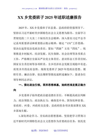 / XX乡党委班子2025年述职述廉报告