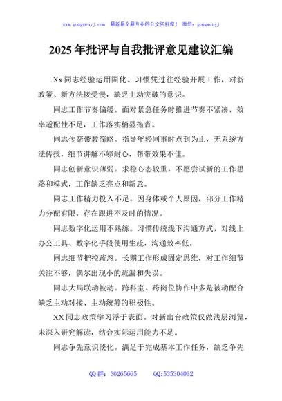 / 2025年批评与自我批评意见建议汇编
