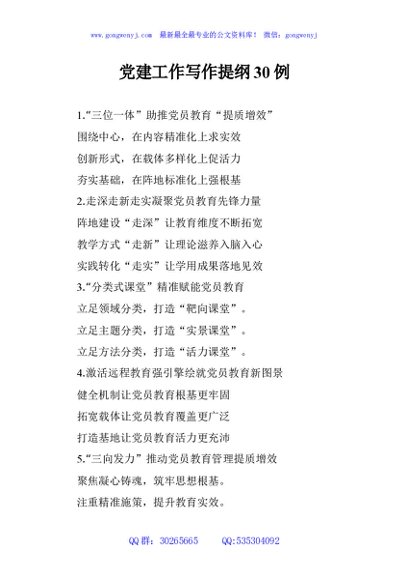 / 党建工作写作提纲30例