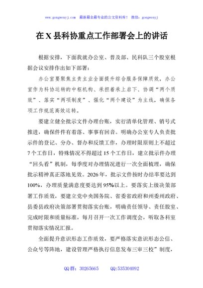 / 在X县科协重点工作部署会上的讲话
