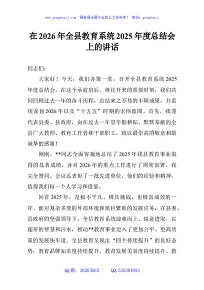 / 在2026年全县教育系统2025年度总结会上的讲话
