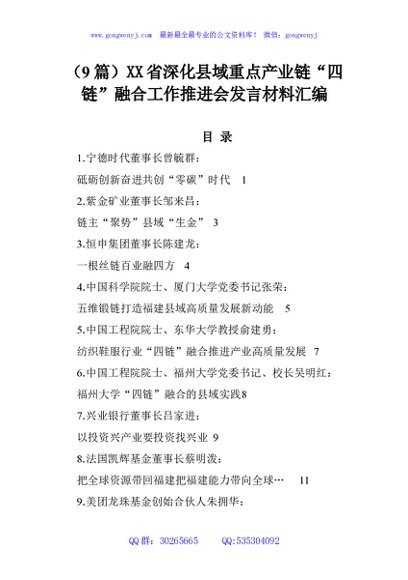 / (9篇)XX省深化县域重点产业链“四链”融合工作推进会发言材料汇编