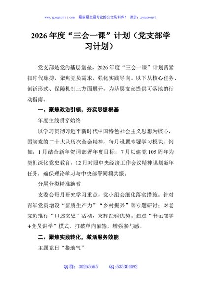 / 2026年度“三会一课”计划(党支部学习计划)