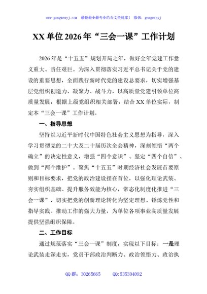 / XX单位2026年“三会一课”工作计划
