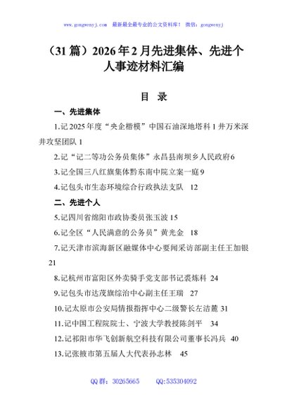 / (31篇)2026年2月先进集体、先进个人事迹材料汇编