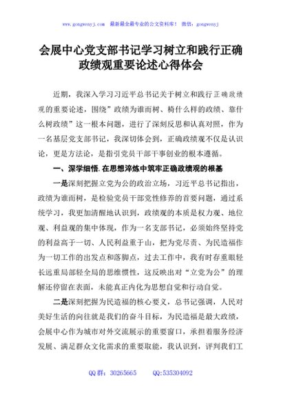 / 会展中心党支部书记学习树立和践行正确政绩观重要论述心得体会