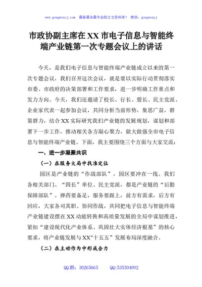 / 市政协副主席在XX市电子信息与智能终端产业链第一次专题会议上的讲话