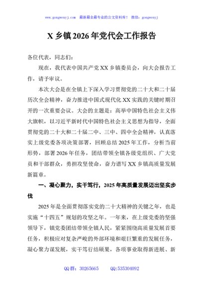 / X乡镇2026年党代会工作报告