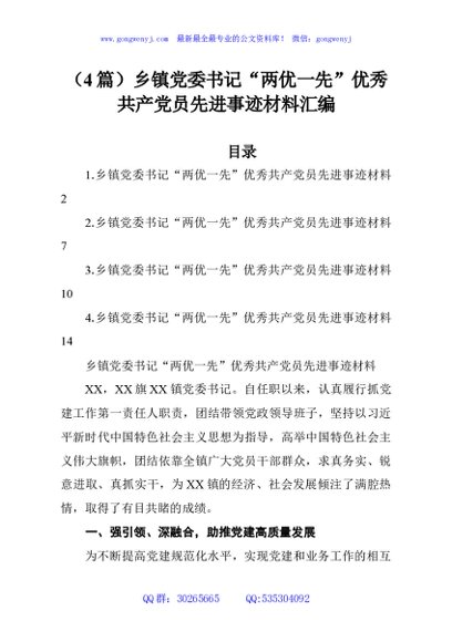/ (4篇)乡镇党委书记“两优一先”优秀共产党员先进事迹材料汇编