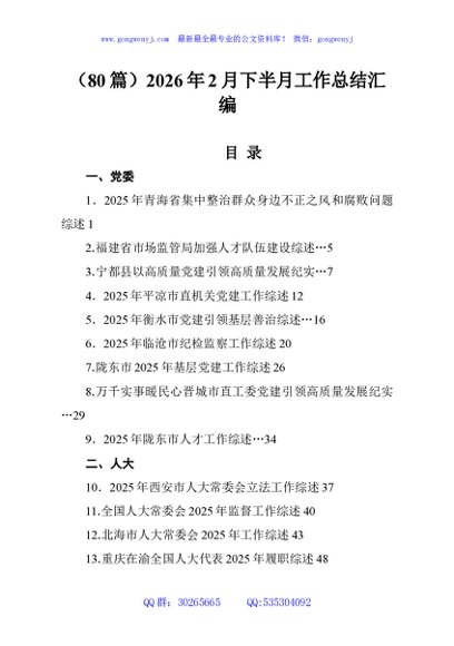 / (80篇)2026年2月下半月工作总结汇编