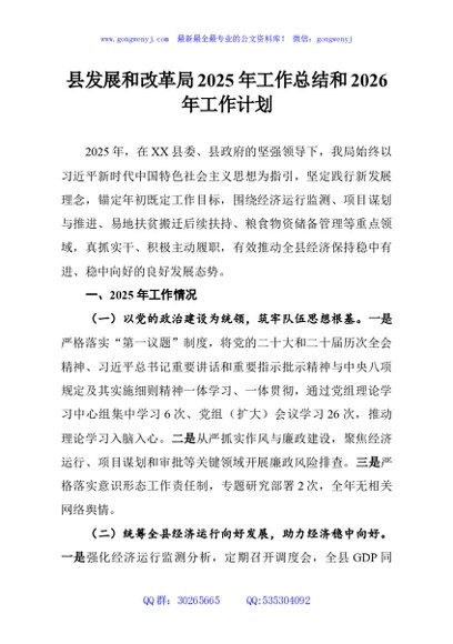 / 县发展和改革局2025年工作总结和2026年工作计划