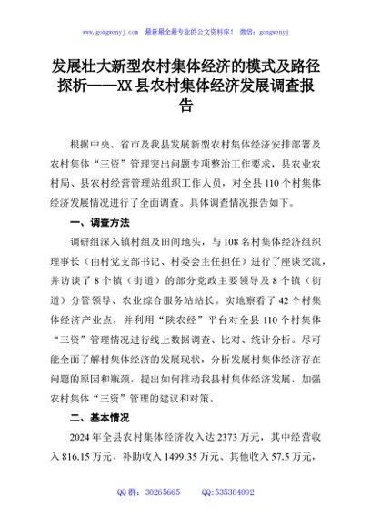 / 发展壮大新型农村集体经济的模式及路径探析——XX县农村集体经济发展调查报告