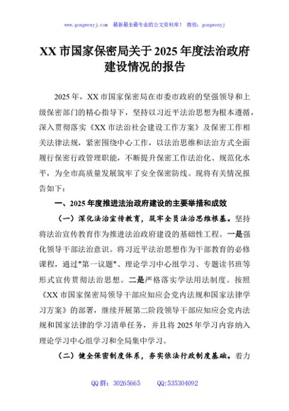 / XX市国家保密局关于2025年度法治政府建设情况的报告