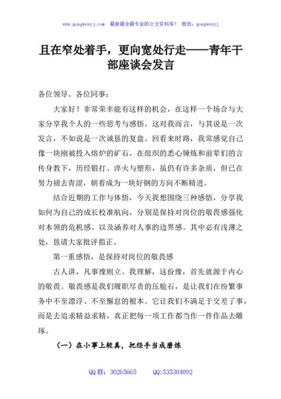 / 且在窄处着手,更向宽处行走——青年干部座谈会发言