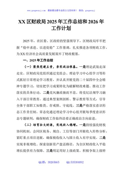 / XX区财政局2025年工作总结和2026年工作计划