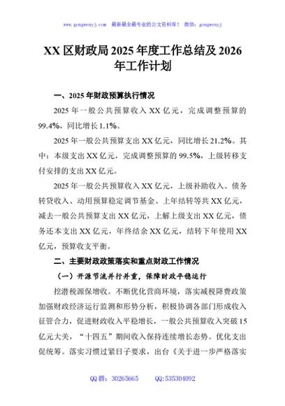 / XX区财政局2025年度工作总结及2026年工作计划