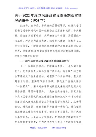 / 关于2022年度党风廉政建设责任制落实情况的报告
