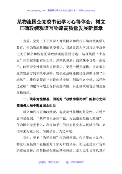 / 某物流国企党委书记学习心得体会:树立正确政绩观谱写物流高质量发展新篇章