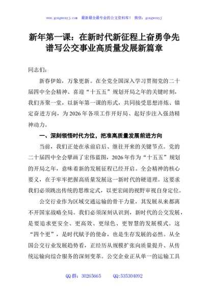 新年第一课:在新时代新征程上奋勇争先谱写公交事业高质量发展新篇章