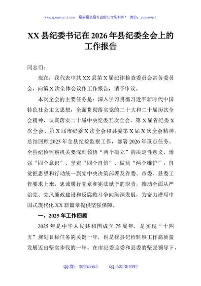 / X县纪委书记在2026年县纪委全会上的工作报告