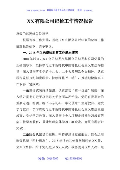 / XX有限公司纪检工作情况报告