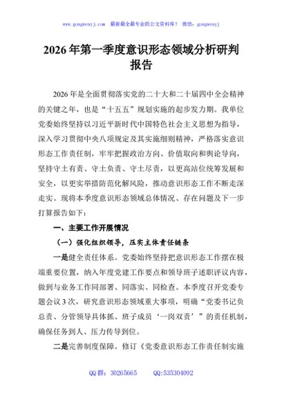 / 2026年第一季度意识形态领域分析研判报告