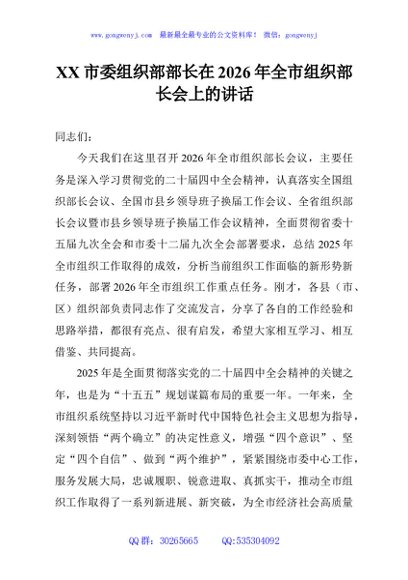 / XX市委组织部部长在2026年全市组织部长会上的讲话