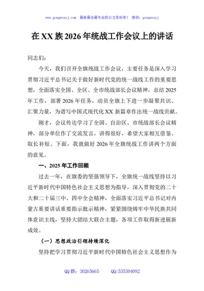 / 在XX族2026年统战工作会议上的讲话