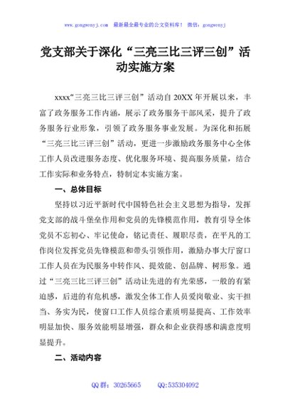 / 党支部关于深化“三亮三比三评三创”活动实施方案