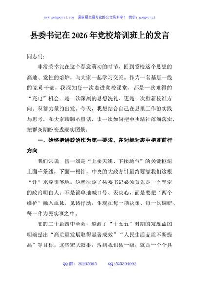 / 县委书记在2026年党校培训班上的发言