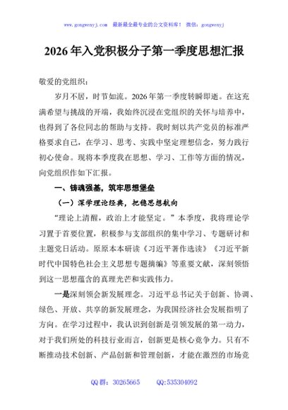 / 2026年入党积极分子第一季度思想汇报