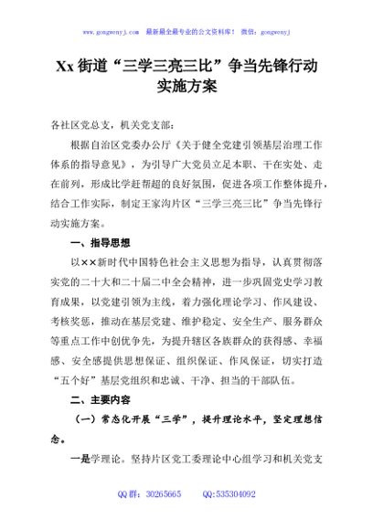 / Xx街道“三学三亮三比”争当先锋行动实施方案