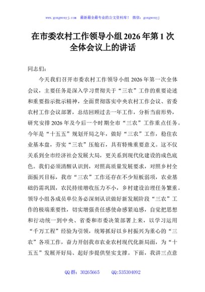 / 在市委农村工作领导小组2026年第1次全体会议上的讲话