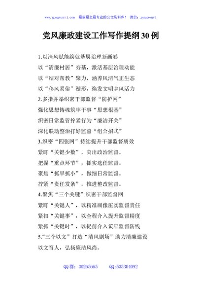 / 党风廉政建设工作写作提纲30例