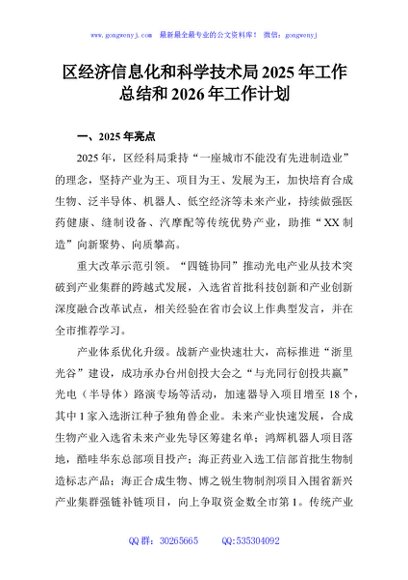 / 区经济信息化和科学技术局2025年工作总结和2026年工作计划