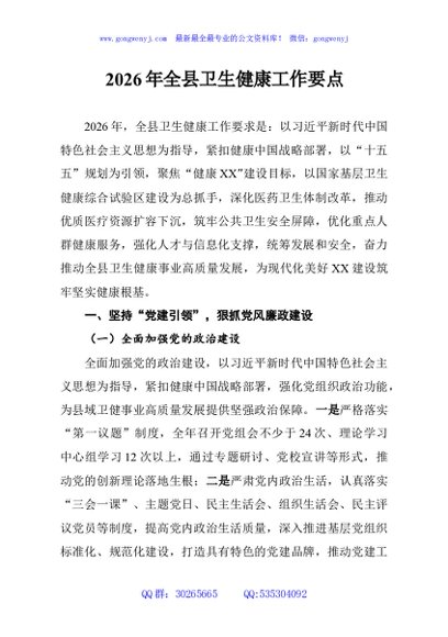 / 2026年全县卫生健康工作要点