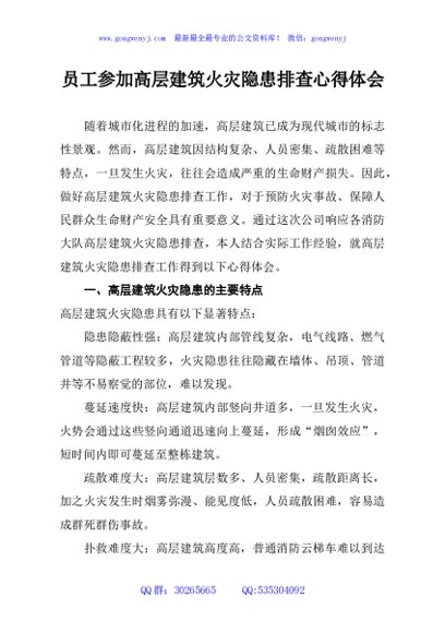 员工参加高层建筑火灾隐患排查心得体会