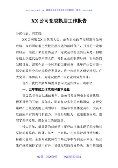 / XX公司党委换届工作报告