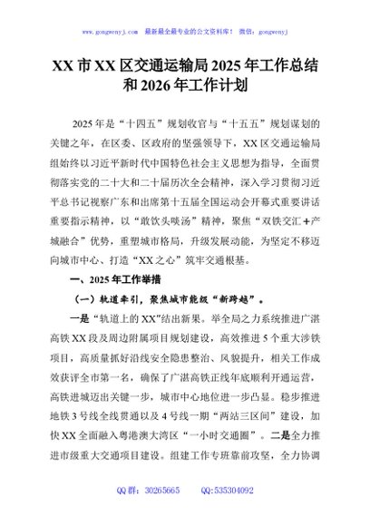 / XX市XX区交通运输局2025年工作总结和2026年工作计划